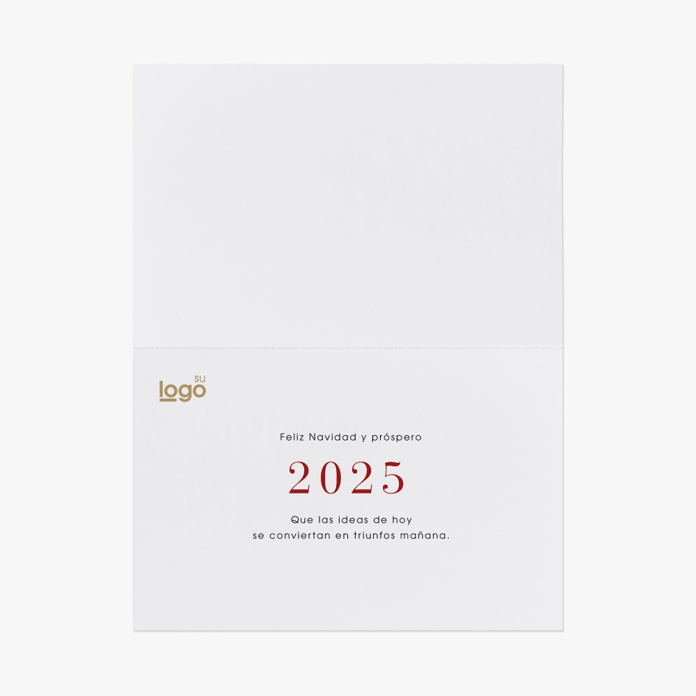 Envíe sus felicitaciones navideñas con una tarjeta impresa en papel certificado ECF, TCF et FSC®, de primera calidad y personalizable con su logotipo, datos de contacto y sitio web.