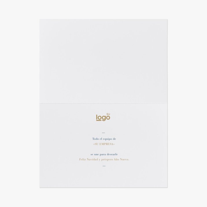 Envíe sus felicitaciones navideñas con una tarjeta impresa en papel certificado ECF, TCF et FSC®, de primera calidad y personalizable con su logotipo, datos de contacto y sitio web.