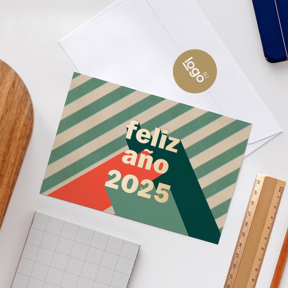 Envíe sus felicitaciones navideñas con una tarjeta impresa en papel certificado ECF, TCF et FSC®, de primera calidad y personalizable con su logotipo, datos de contacto y sitio web.