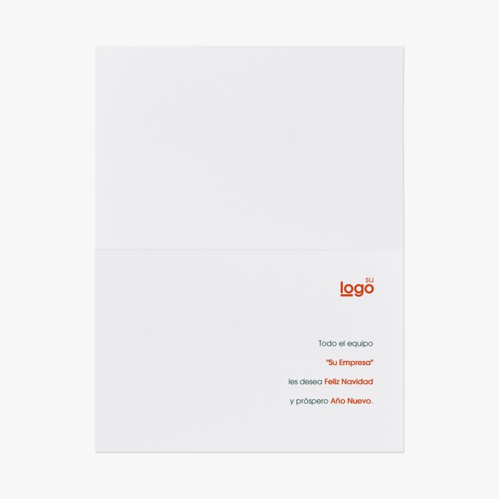 Envíe sus felicitaciones navideñas con una tarjeta impresa en papel certificado ECF, TCF et FSC®, de primera calidad y personalizable con su logotipo, datos de contacto y sitio web.