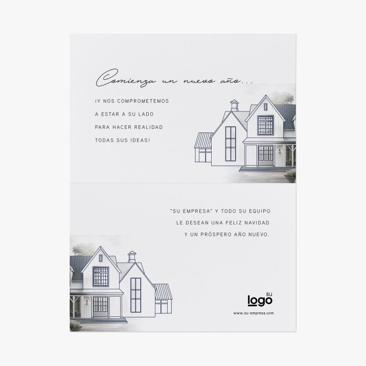 Envíe sus felicitaciones navideñas con una tarjeta impresa en papel certificado ECF, TCF et FSC®, de primera calidad y personalizable con su logotipo, datos de contacto y sitio web.