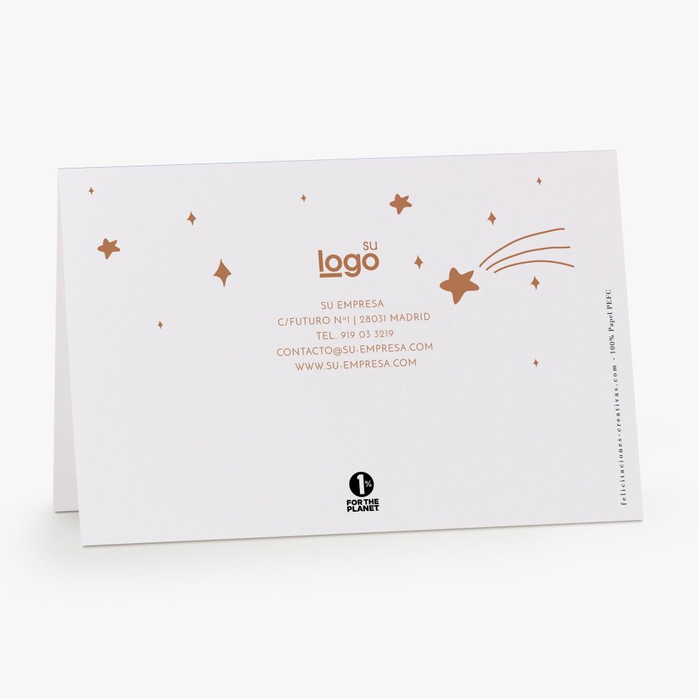 Envíe sus felicitaciones navideñas con una tarjeta impresa en papel certificado ECF, TCF et FSC®, de primera calidad y personalizable con su logotipo, datos de contacto y sitio web.