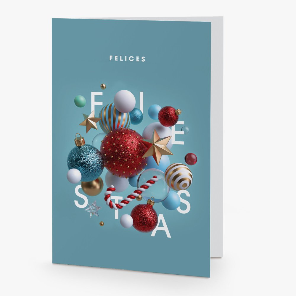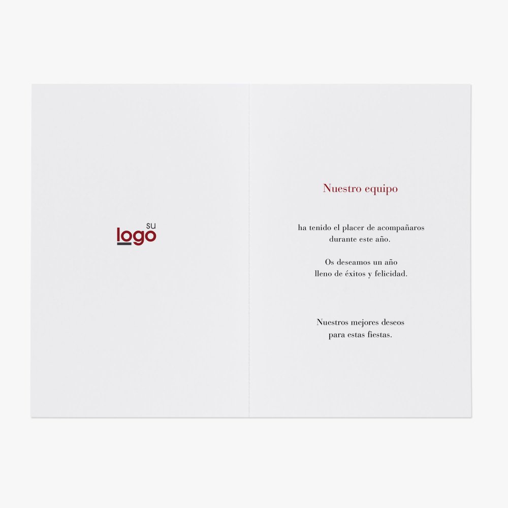 Envíe sus felicitaciones navideñas con una tarjeta impresa en papel certificado ECF, TCF et FSC®, de primera calidad y personalizable con su logotipo, datos de contacto y sitio web.