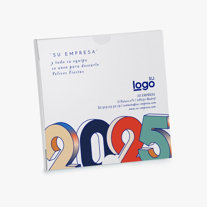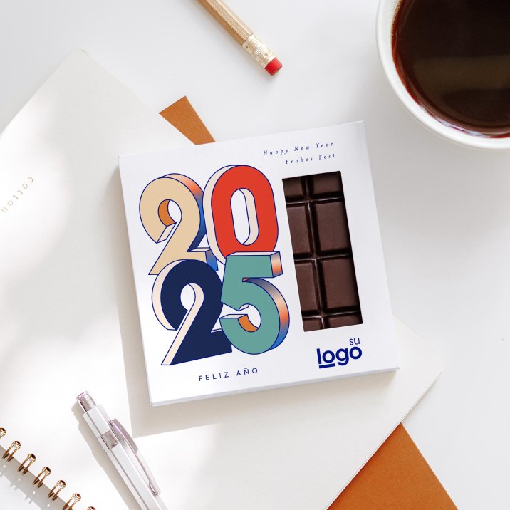 Elija su tableta de chocolate y personalice su caja con el logo de su empresa, sus datos y su web. En el dorso podrá incluir sus mensajes para desear lo mejor en estas fechas navideñas.