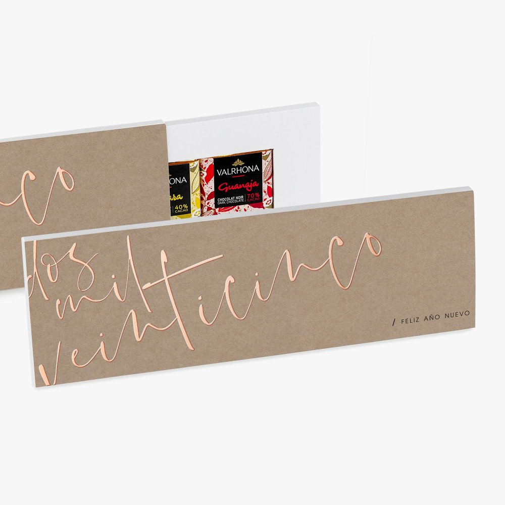 Cada felicitación contiene 5 chocolatinas (sabores: chocolate negro y chocolate con leche).